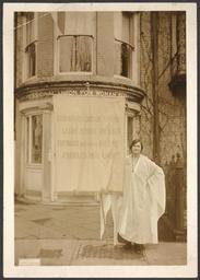 | Keywords: Mrs. Jessie Hardy MacKaye 160027v.jpg Summary Photograph of Jessie Hardy MacKaye with banner in front of Congressional Union for Woman Suffrage building Banner reads Forward Out of Error Leave Behind the Night Forward through the Darkness Forward Into Light 1 photograph print 7 x 10 in accession number Call Number Location National Woman's Party Records Group I Container I 160 Folder Pickets 1917 Source Collection Records of the National Woman's Party institution Library of Congress Manuscript Division http //hdl loc gov/loc mss/mnwp 160027 PD-1923 PD-Harris-Ewing suffragettes |