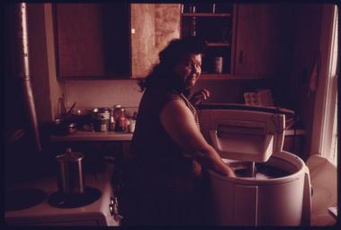 | Keywords: MRS. MAY WATKINS DOES THE FAMILY WASH IN THE KITCHEN OF THEIR NEW HOME. THEY WERE FORCED TO MOVE WHEN THEIR OLD HOUSE... - NARA - 557356.tif Scope and content General notes 557356 Local identifier 412-DA-14904 Environmental Protection Agency 12/02/1970 - NARA-Author Paik Kenneth 1940-2006 Photographer 8464462 <br /> Kansas City Wyandotte county Kansas United States North and Central America inhabited place 3330045 39 1 -94 617 <br /> Still Picture Records Section Special Media Archives Services Division NWCS-S National Archives at College Park 8601 Adelphi Road College Park MD 20740-6001 05/1975 Record group Record Group 412 Records of the Environmental Protection Agency 1944 - 2006 Record group ARC 708 DOCUMERICA The Environmental Protection Agency's Program to Photographically Document Subjects of Environmental Concern compiled 1972 - 1977 Series ARC 542493 File unit File unit ARC Variant control numbers Agency-Assigned Identifier 249/24/014904<br /> NAIL Control Number NWDNS-412-DA-14904 yes Other versions <gallery> File MRS _MAY_WATKINS_DOES_THE_FAMILY_WASH_IN_THE_KITCHEN_OF_THEIR_NEW_HOME _THEY_WERE_FORCED_TO_MOVE_WHEN_THEIR_OLD_HOUSE _-_NARA_-_557356 tif tif File MRS _MAY_WATKINS_DOES_THE_FAMILY_WASH_IN_THE_KITCHEN_OF_THEIR_NEW_HOME _THEY_WERE_FORCED_TO_MOVE_WHEN_THEIR_OLD_HOUSE _-_NARA_-_557356 jpg jpg </gallery> NARA-cooperation PD-USGov Kenneth Paik Mulkey Square neighborhood in 1973 Washing laundry Washing machines NARA TIF images with categorized JPGs |