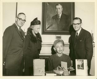 | Keywords: birthplace foundation monochrome Left to right: Mrs. Herert McK. Smith, Mrs. Eleanor Wilson McAdoo, and Dr. Samuel R. Spencer, Jr. Date: Nov. 19, 1962. Left to right: Mrs. Herert McK. Smith, Mrs. Eleanor Wilson McAdoo, and Dr. Samuel R. Spencer, Jr. Date: Nov. 19, 1962. |