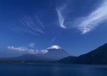 Keywords: fuji mount mountain japan town cloud cap morning lake wave reflection winter blue buildings sky ripple water snow kawaguchi-ko