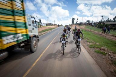 | Keywords: road outdoor freeway KENYA, Laikipia: In a photograph taken by Make it Kenya 24 November 2015, riders cycle in a group downhill towards Timau town in Laikipia County, 250km north of the Kenyan capital Nairobi, on the fourth and final day of the Mt. Kenya Epik cycling challenge. The 4-day mountain biking adventure challenge race circumnavigates the Mount Kenya region and this inaugural event attracted both Kenyan and international riders from as a far afield as Norway and Japan. The Epik was established to attract sports tourism to the Mt. Kenya region and showcase what it has to offer the outdoor, extreme sports enthusiast while providing riders the opportunity to interact with local communities and witness some of the beautiful scenery and landscapes surrounding Mt. Kenya that otherwise might not seen. The two-man team of Kenyan riders Joseph Echuwa and Samwel Mwangi won the 300km, 4-day race crossing the finish line in 10hrs 31mins and 05secs. MANDATORY CREDIT MAKE IT KENYA PHOTO / STUART PRICE. KENYA, Laikipia: In a photograph taken by Make it Kenya 24 November 2015, riders cycle in a group downhill towards Timau town in Laikipia County, 250km north of the Kenyan capital Nairobi, on the fourth and final day of the Mt. Kenya Epik cycling challenge. The 4-day mountain biking adventure challenge race circumnavigates the Mount Kenya region and this inaugural event attracted both Kenyan and international riders from as a far afield as Norway and Japan. The Epik was established to attract sports tourism to the Mt. Kenya region and showcase what it has to offer the outdoor, extreme sports enthusiast while providing riders the opportunity to interact with local communities and witness some of the beautiful scenery and landscapes surrounding Mt. Kenya that otherwise might not seen. The two-man team of Kenyan riders Joseph Echuwa and Samwel Mwangi won the 300km, 4-day race crossing the finish line in 10hrs 31mins and 05secs. MANDATORY CREDIT MAKE IT KENYA PHOTO / STUART PRICE. |