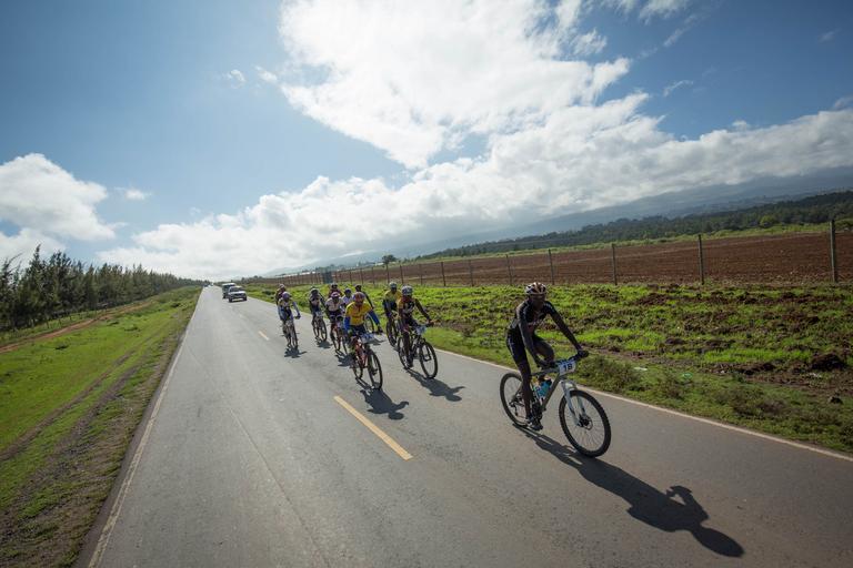 | Keywords: outdoor road hill landscape mountain KENYA, Laikipia: In a photograph taken by Make it Kenya 24 November 2015, riders cycle in a group downhill towards Timau town in Laikipia County, 250km north of the Kenyan capital Nairobi, on the fourth and final day of the Mt. Kenya Epik cycling challenge. The 4-day mountain biking adventure challenge race circumnavigates the Mount Kenya region and this inaugural event attracted both Kenyan and international riders from as a far afield as Norway and Japan. The Epik was established to attract sports tourism to the Mt. Kenya region and showcase what it has to offer the outdoor, extreme sports enthusiast while providing riders the opportunity to interact with local communities and witness some of the beautiful scenery and landscapes surrounding Mt. Kenya that otherwise might not seen. The two-man team of Kenyan riders Joseph Echuwa and Samwel Mwangi won the 300km, 4-day race crossing the finish line in 10hrs 31mins and 05secs. MANDATORY CREDIT MAKE IT KENYA PHOTO / STUART PRICE. KENYA, Laikipia: In a photograph taken by Make it Kenya 24 November 2015, riders cycle in a group downhill towards Timau town in Laikipia County, 250km north of the Kenyan capital Nairobi, on the fourth and final day of the Mt. Kenya Epik cycling challenge. The 4-day mountain biking adventure challenge race circumnavigates the Mount Kenya region and this inaugural event attracted both Kenyan and international riders from as a far afield as Norway and Japan. The Epik was established to attract sports tourism to the Mt. Kenya region and showcase what it has to offer the outdoor, extreme sports enthusiast while providing riders the opportunity to interact with local communities and witness some of the beautiful scenery and landscapes surrounding Mt. Kenya that otherwise might not seen. The two-man team of Kenyan riders Joseph Echuwa and Samwel Mwangi won the 300km, 4-day race crossing the finish line in 10hrs 31mins and 05secs. MANDATORY CREDIT MAKE IT KENYA PHOTO / STUART PRICE. |
