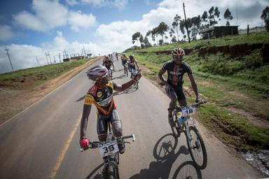 | Keywords: outdoor bike vehicle motorcycle sport KENYA, Laikipia: In a photograph taken by Make it Kenya 24 November 2015, riders cycle in a group downhill towards Timau town in Laikipia County, 250km north of the Kenyan capital Nairobi, on the fourth and final day of the Mt. Kenya Epik cycling challenge. The 4-day mountain biking adventure challenge race circumnavigates the Mount Kenya region and this inaugural event attracted both Kenyan and international riders from as a far afield as Norway and Japan. The Epik was established to attract sports tourism to the Mt. Kenya region and showcase what it has to offer the outdoor, extreme sports enthusiast while providing riders the opportunity to interact with local communities and witness some of the beautiful scenery and landscapes surrounding Mt. Kenya that otherwise might not seen. The two-man team of Kenyan riders Joseph Echuwa and Samwel Mwangi won the 300km, 4-day race crossing the finish line in 10hrs 31mins and 05secs. MANDATORY CREDIT MAKE IT KENYA PHOTO / STUART PRICE. KENYA, Laikipia: In a photograph taken by Make it Kenya 24 November 2015, riders cycle in a group downhill towards Timau town in Laikipia County, 250km north of the Kenyan capital Nairobi, on the fourth and final day of the Mt. Kenya Epik cycling challenge. The 4-day mountain biking adventure challenge race circumnavigates the Mount Kenya region and this inaugural event attracted both Kenyan and international riders from as a far afield as Norway and Japan. The Epik was established to attract sports tourism to the Mt. Kenya region and showcase what it has to offer the outdoor, extreme sports enthusiast while providing riders the opportunity to interact with local communities and witness some of the beautiful scenery and landscapes surrounding Mt. Kenya that otherwise might not seen. The two-man team of Kenyan riders Joseph Echuwa and Samwel Mwangi won the 300km, 4-day race crossing the finish line in 10hrs 31mins and 05secs. MANDATORY CREDIT MAKE IT KENYA PHOTO / STUART PRICE. |
