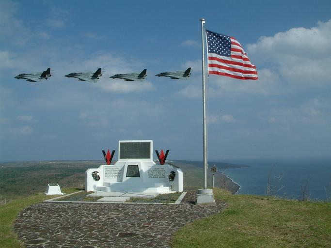 | Keywords: Mt Suribachi memorial Iwo Jima.jpg  At sea with USS Kitty Hawk CV-63 Jan 16 2003 ” F-14 Tomcats assigned to the Black Knights of Fighter Squadron One Five Four VF-154 fly by Mt Suribachi on Iwo Jima Island VF-154 is part of Carrier Air Wing Five CVW-5 embarked aboard Kitty Hawk conducting Carrier Readiness Certifications Kitty Hawk is the Navy ™s only permanently forward-deployed aircraft carrier and operates out of Yokosuka Japan http //www news navy mil/view_single asp id 4234 U S Navy NewsStand photo ID 030116-N-1541K-028<br />http //www news navy mil/ U S Navy NewsStand 2003-01-16 U S Navy Lt j g Greg Kausner PD-USGov-Military-Navy Iwo Jima Aircraft formation flight of F-14A Tomcat Fighter Squadron 154 United States Navy  |