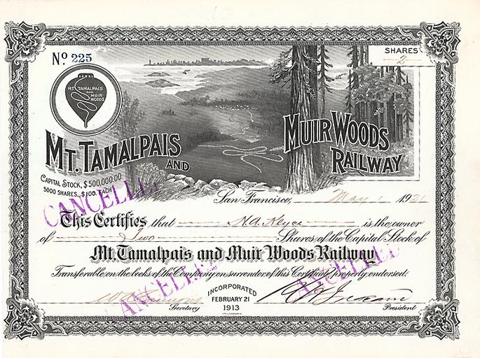 Keywords: Mt. Tamalpais & Muir Woods Railway 1921.jpg de Share of the Mt Tamalpais Muir Woods Railway from the 1st May 1921 1921-05-01 http //www gutowski de/Katalog-61/Katalogbilder/1013 jpg Unbekannte Autoren und Grafiker; Scan von Auktionshaus Vladimir Gutowski other versions PD-old-70-1923 Stock certificates from the United States |