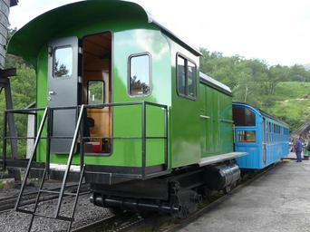 | Keywords: Mt Washington cog railway diesel locomotive from rear.jpg en This Mt Washington cog railway diesel locomotive the first of its type uses a hydraulic pump and hydraulic motor to turn the cog wheel to climb the mountain On descent the cog hydraulic motor becomes a pump and the engine pump is reversed to pull the hydraulic fluid past an orifice in the line to allow the engine to pull the car down the mountain The orifice is opened completely when going up the mountain Own SayCheeeeeese 2008-07-25 Mount Washington Cog Railway Diesel locomotives of the United States Diesel rack locomotives |