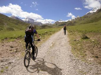 Keywords: mtb mountain bike alpine transalp mountains cycling away bike nature bergsport sport cyclists bicycle tour tour biker dangerous uphill sky blue tyrol heidelberger hütte fimbatal