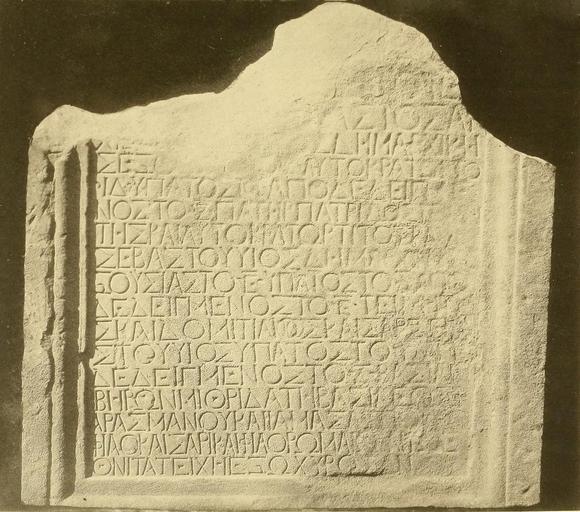 | Keywords: Mtskhet stella - Greek text.jpg  ΑΔ ΥΠΑ ΤΟΣΤΟ F ΑΠΟΔΕΔΕΙΓ Ε  ΟΣΤΟ Ζ ΠΑΤΗΡ ΠΑΤΡΙΔΟ  ΤΗΣ ΚΑΙ ΑΥΤΟΚΡΑΤΩΡ ΤΙΤΟ  ΣΕΒΑΣΤΟΥ ΥΙΟΣ  ΞΟΥΣΑΣΤΟ Ε ΥΠΑ ΤΟΣΤΟ Δ ΑΠΟ ΔΕΔΕΙΓ Ε ΟΣΤΟ E Τ ΣΚΑΙ ΔΟ ΙΤΙΛΙΘΟΣ ΚΑΙΣΑΡ  ΣΤΟΥ ΥΙΟΣ ΥΠΑ ΤΟΣΤΟ Γ ΑΠΟ ΔΕΔΕΙΓ Ε ΟΣΤΟ Δ ΒΑΣΙΛΕ Ι ΒΗΡΩ  ΙΘΡΙΔΑΤΗ ΒΑΣΙΛΕΟΣ Φ ΑΡΑΣ Α ΟΥ ΚΑΙ ΙAMAZA ΦΙΛΟ ΚΑΙΣΑΡΙ ΚΑΙ ΦΙΛΟ PΩMA  Θ ΙΤΑ ΤΕΙΧΗ ΕΞΩ ΧΥΡΟΣ  ka  აქულბაქევის არქე ლ გიური გათხრებისას 1867 წელს აღმ ჩე ილი ბერძ ულე  ვა ი წარწერია ი ქვა რ მელიც ჩატა ებული იყ მცხეთის გალავა ში რ გ რც სამშე ებლ წარწერა წარწერაში მ ხსე იებულია  რმეფ ბის პერი დში მ ღვაწე მეფეები - მეფე იბერიისა მითრიდატე მეფე ფარსმა ი და შვილი იამაზა წარწერა თარიღდება 75 წლით ru Импе ато кеса ь Веспасиан Август великий пе восвященик облеченный т ибунскою властю в седмой  аз импе ато т иумфато в чети надцатый  аз консул шестой  аз и п едназначенный на седмой отец отечество цензо и импе ато Тит цеза сын Августа облеченный т ибунскою властю в пятый  аз консул четве тый  аз п едназначенный на пятый и цензо Домициан Цеза сын Августа консул т етий  аз п едназначенный на четве тый ца ю Ибе иицев  ит идату ца я Фа смана и Ямазды сыну д угу Кеса я и д угу на ода Римскаго выст оили к епость 2012-10-28 Museum Caucasicum - II 1902 P Uvarova PD-Art-100 History of Mtskheta Greek language Mihrdat I of Iberia Pharasmanes I of Iberia |