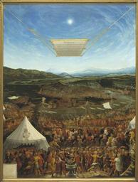 | Keywords: Mucius Scaevola before King Porsenna (Abraham Schöpfer) - Nationalmuseum - 17245.tif Abraham Schöpfer en Mucius Scaevola before King Porsenna This almost impossibly detailed picture is meticulously painted And magnificent The actual subject of the painting is in the foreground the Roman nobleman Gaius Mucius has thrust his hand into a burning fire to avoid divulging the participants in a failed coup against the Etruscan king Porsena who had besieged Rome The painting is part of a series on famous classical battles commissioned by William IV of Bavaria Several of these works were taken as war bounty by Swedish troops in Munich in 1632 Det är närmast osannolikt detaljrikt och minutiöst noggrant målat Och praktfullt I förgrunden utspelar sig själva bildens motiv Den romerska ädlingen Gajus Muscius har stoppat sin hand i brinnande kol för att undgå att avslöja vilka som ingått i den misslyckade komplotten mot den etruskiske kungen Porsena som belägrat Rom Målningen ingår i en serie med berömda antika fältslag som beställdes av Wilhelm IV av Bayern 1632 togs ett antal av dessa som krigsbyte av svenska trupperna i München header This almost impossibly detailed picture is meticulously painted And magnificent The actual subject of the painting is in the foreground the Roman nobleman Gaius Mucius has thrust his hand into a burning fire to avoid divulging the participants in a failed coup against the Etruscan king Porsena who had besieged Rome The painting is part of a series on famous classical battles commissioned by William IV of Bavaria Several of these works were taken as war bounty by Swedish troops in Munich in 1632 Det är närmast osannolikt detaljrikt och minutiöst noggrant målat Och praktfullt I förgrunden utspelar sig själva bildens motiv Den romerska ädlingen Gajus Muscius har stoppat sin hand i brinnande kol för att undgå att avslöja vilka som ingått i den misslyckade komplotten mot den etruskiske kungen Porsena som belägrat Rom Målningen ingår i en serie med berömda antika fältslag som beställdes av Wilhelm IV av Bayern 1632 togs ett antal av dessa som krigsbyte av svenska trupperna i München 1533 Oil on wood Olja på trä Size cm 120 157 Framed Size cm 138 176 9 Institution Nationalmuseum Stockholm Signerad AbrahamSchöpferPict Monacen F MDXXXIII ; A S accession number 17245 NM 295 place of creation Erik Cornelius / Nationalmuseum credit line Nationalmuseum Stockholm cooperation project Licensed-PD-Art PD-old-auto PD-Nationalmuseum_Stockholm Media contributed by Nationalmuseum Stockholm 2016-10 Media contributed by Nationalmuseum Stockholm improve categories Media contributed by Nationalmuseum Stockholm add artist cat and commonscat to artist on wikidata Paintings in the Nationalmuseum Stockholm |
