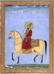 | Keywords: Mughal emperor farrukhsiyar16 hi.jpg Painting on album page in opaque watercolour and gold on paper the emperor Muhammad Farrukhsiyar on horseback He wears a dark red belted robe with all-over gold embroidered design 16th century Victoria and Albert Museum London object history credit line accession number http //collections vam ac uk/item/O433428/page/ Bridgeman Berlin from the Large Clive Album http //www art-prints-on-demand com/a/mughal-school/a-mahout-riding-an-elepha html PD-Art-100 1710s paintings from India Horse riders in art of India Mughal art in the Victoria and Albert Museum Farrukhsiyar |