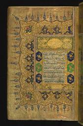 | Keywords: Muhammad Salih ibn 'Umar - Double-page Illuminated Frontispiece - Walters W7432A - Full Page.jpg This folio from Walters manuscript W 743 is the left side of a double-page illuminated frontispiece inscribed with the initial verses of chapter 2 Surat al-baqarah islamic 1853 1269 Ottoman ink and pigments on laid European paper cm 16 11 accession number W 743 2A 83118 Robert L Fox date and mode of acquisition unknown Walters Art Museum Gift of Robert L Fox 1990 place of origin Constantinople present-day Istanbul Turkey Walters Art Museum license 2D Qur'an 19th century Walters MS 743 |