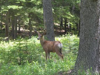 | Keywords: glacier national park glaciernationalpark mammals wildlife deer mule deer muledeer buck antlers forest outdoor animal A young mule deer buck shows off his velvet-covered antlers in June. Photo: Bill Hayden, NPS A young mule deer buck shows off his velvet-covered antlers in June. Photo: Bill Hayden, NPS |