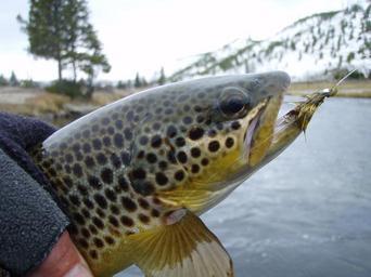 Keywords: MuleshoeBendBrownTroutFireholeRiver.jpg Brown Trout Taken On Woolly Bugger At Muleshoe Bend Firehole River October 2007 Released Own 2000-10 Mike Cline Angling in Yellowstone National Park Firehole River Salmo trutta