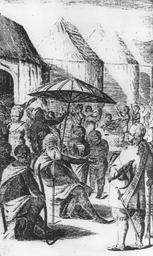 | Keywords: Müller Fetu 1648 B002.jpg The palaver between Bredewa the King of Fetu and the Swedish commissioner Neumann in or near Degou the contemporary Cape Coast in Ghana in 1648 The Swedish are invited by the king to erect a stony house for the purpose of trade A suitable contract was closed following that on whose basis one year later with the construction of the Fort Carolusburg Karlsborg the later Cape Coast Castle was begun <br /> original xylography or copper engraving or copper etching Die Unterredung zwischen Bredewa dem König von Fetu und dem schwedischen Kommissar Neumann in oder nahe Degou das heutige Cape Coast in Ghana im Jahre 1648 Die Schweden werden dabei vom König eingeladen ein steinernes Haus zum Zwecke des Handels zu errichten Ein entsprechender Vertrag wurde im Anschluss daran geschlossen auf dessen Grundlage ein Jahr später mit der Errichtung des Fortes Carolusburg Karlsborg das spätere Cape Coast Castle begonnen wurde <br /> Original Holzschnitt oder Kupferstich oder Kupfer-Radierung Wilhelm Johann Müller Die Africanische / Auf Der Guineischen Gold-Cust gelegene Landschafft Fetu Wahrhafftig und fleissig Auß Eigener Acht-jähriger Erfahrung / genauer Besichtigung / und unablässiger Erforschung beschrieben / Auch mit dienlichen Kupffern / Und einem Fetuischen Wörter-Buche geziehret Hamburg 1673 reprint <gallery> File MüllerHamburg1673Titelblatt 300dpi 001 jpg File MüllerHamburg1676Deckblatt 002 jpg </gallery> 1648 visual content <br /> 1673 first publishing Wilhelm Johann Müller PD-Art PD-old-100 17th-century deaths Cape Coast Castle History of Sweden 1648 events in Ghana Swedish Gold Coast |