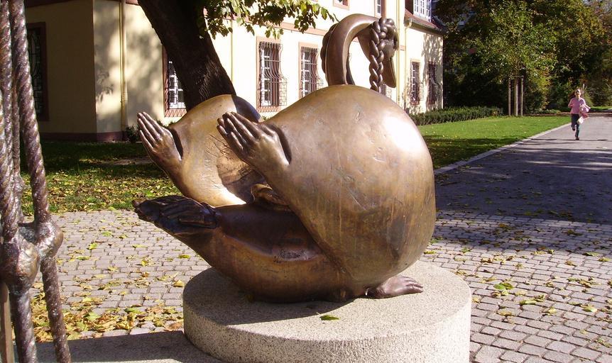 Keywords: Mundenheimer Schwan von Rumpf.jpg en sculpture in Ludwigshafen-Mundenheim Germany Own Immanuel Giel 2007-09 FoP-Germany Zedwitz-Brunnen Sculptures of swans