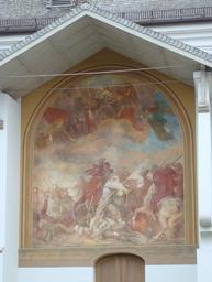 | Keywords: Munich Sendling Fresco Old Church St Margaret by Lindenschmidt.jpg Fresco Die Bauernschlacht von Sendling 1705 by Wilhelm Lindenschmit der Ältere on northern Facade of Old Church St Margaret in Munich/Sendling own 2007-09-19 Dominik Hundhammer Alte Pfarrkirche St Margaret München PD-old-100 The Smith of Kochel Wilhelm Lindenschmit the Elder Frescos in Upper Bavaria | ||||