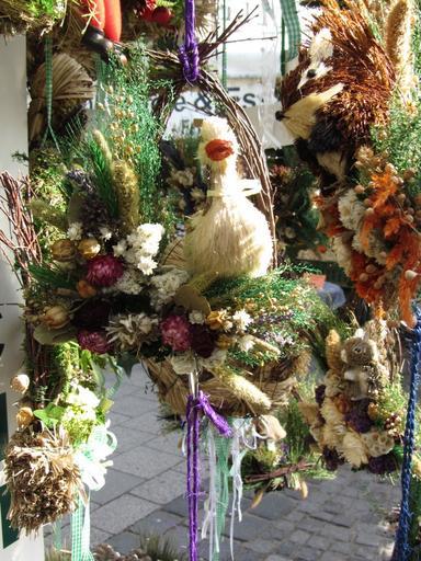 Keywords: munich vikt viktualienmarkt straw flowers craft colorful handicraft bird
