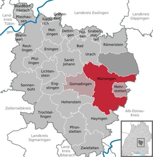 | Keywords: Münsingen in RT.svg DeLocMaps Münsingen Münsingen Württemberg Landkreis Reutlingen District of Reutlingen Reutlingen district L'arrondissement de Reutlingen Arrondissement de Reutlingen Baden-Württemberg Bade-Wurtemberg Baden-Württemberg Adobe Illustrator <br/> own based on <br/> File Municipalities in Baden-Württemberg svg by TUBS<br/> File Baden-Württemberg HD district svg by TUBS 2010-04-29 Hagar66 based on work of TUBS Hagar66/licensesection Attribution TUBS/Credits Locator maps of municipalities in Landkreis Reutlingen Münsingen Württemberg |