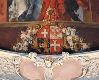 | Keywords: Münsterlingen Klosterkirche A002 Kuppel Wappen.jpg Münsterlingen ehemalige Klosterkirche St Remigius Deckengemälde von Jacob Carl Stauder 1718 “1719 Mariä Verkündigung Onken Nr A2 ; Secco-Technik kein Fresko ; Detail Wappen der Äbtissin Beatrix Schmid reg 1702-1728 own own photograph 2014-05 Creator Jacob Carl Stauder Photo Andreas Praefcke Photos by User AndreasPraefcke Ceiling paintings in St Remigius Münsterlingen 1719 paintings Paintings of coats of arms Coats of arms of abbesses |