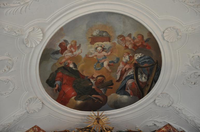 | Keywords: Münsterlingen Klosterkirche A101 Anbetung des Lamms.jpg Münsterlingen ehemalige Klosterkirche St Remigius Deckengemälde von Jacob Carl Stauder 1722 Anbetung des Lammes der Geheimen Offenbarung Onken Nr A101 Rundbild im Altarhaus über dem Hochaltar ; Secco-Technik kein Fresko own own photograph 2014-05 Creator Jacob Carl Stauder Photo Andreas Praefcke Photos by User AndreasPraefcke Ceiling paintings in St Remigius Münsterlingen 1722 paintings Adoration of the lamb | ||||
