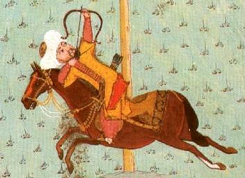 Keywords: Murad II.jpg en Sultan Murad II at archery practice Hazine 1523 folio 138a Detail File Hunername 138a jpg Ottoman painter 1584 PD-old-100 Hünername Murad II Horse archers in art