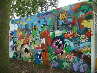 Keywords: mural wall graffiti art cartoon phonkie smily radio bird clown magic flower rups sun egg city yellow clouds phonk stars balloons paint Wall painted in 2015 Wall painted in 2015