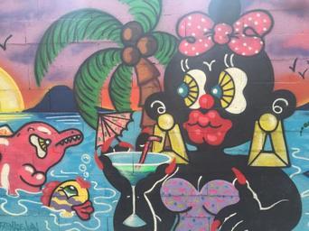 Keywords: mural art graffity graffiti background drink glass water bath palm