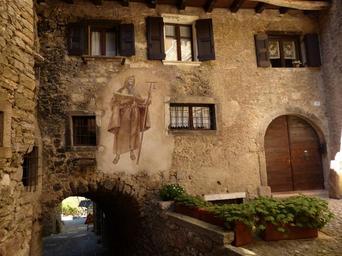 Keywords: mural holy painting art religion church artwork medieval village canale di tenno tenno italy alley houses gorge medieval village