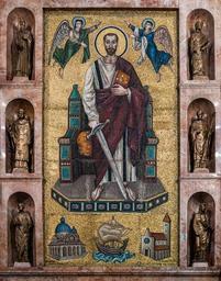 | Keywords: Mural na Catedral da Sé.jpg Sé Cathedral The mosaic was designed in 1953 by the Italian painter Avenali Marcello - Born in Rome on November 16 1912 - son of Luigi and Elena Terziani died in Rome on 11 November 1981 and was ridden by Gruppo Mosaiciste Ravenna Ravenna Mosaicist Group Portrays the patron saint of the city of São Paulo St Paul in Brazil himself the apostle St Paul holding the sword symbol of the decapitation of his death in his right hand; the book symbol of word that brings us teachings in his left hand; wears a white robe symbol of purity and dedication to the work of God; and red cover the symbol of his martyrdom Made with gold and precious stones es Mural en la Catedral da Sé El mosaico fue diseñado en 1953 por el pintor italiano Avenali Marcello - Nacido en Roma el 16 de noviembre 1912 - hijo de Luigi y Elena Terziani murió en Roma el 11 de noviembre de 1981 y fue montado por Gruppo Mosaiciste Ravenna grupo mosaicista Ravenna Retrata el santo patrón de la ciudad de São Paulo San Pablo en Brasil el propio apóstol San Pablo sosteniendo la espada el símbolo de la decapitación de su muerte en su mano derecha; el libro símbolo de la palabra que nos trae enseñanzas en su mano izquierda; lleva una túnica blanca símbolo de pureza y dedicación a la obra de Dios; y cubierta de color rojo el símbolo de su martirio Cathédrale métropolitaine de São Paulo Cathédrale de la Sé au Brésil Le carton a été dessiné en 1953 par le peintre italien Marcello Avenali 1912 - 1981 et l'oeuvre fut réalisée par le Gruppo Mosaiciste Ravenna Il représente Saint Paul patron de la cité Dans la main droite il tient une épée symbole de sa décapitation Dans sa main gauche un livre symbole de ses enseignements Il porte une robe blanche marque de pureté et une toge rouge en souvenir de son martyre pt Mural na Catedral da Sé O mosaico foi projetado em 1953 pelo pintor Italiano Avenali Marcello - nascido em Roma em 16 novembro 1912 filho de Luigi e Elena Terziani morto em Roma em 11 de novembro de 1981 e foi montado pelo Gruppo Mosaiciste Ravenna Grupo mosaicista Ravenna Retrata o padroeiro da cidade de São Paulo no Brasil o próprio São Paulo o apóstolo segurando a espada símbolo da decaptação da sua morte na mão direita; o livro símbolo da palavra que leva nos ensinamentos na mão esquerda; veste a túnica branca símbolo da pureza e dedicação a obra de Deus; e a capa vermelha símbolo do seu martírio 2014-09-06 12 26 32 own User The Photographer/info -23 5506942 -46 6346775 cc-zero ImageNote 1 389 70 1236 2351 2000 2550 2 9x3m ImageNoteEnd 1 QualityImage Uploaded with UploadWizard Catedral da Sé Interior Quality images by The Photographer Quality images of Brazil Mosaics of Saint Paul Taken with Nikon D300 Files by The Photographer Murals in São Paulo city |