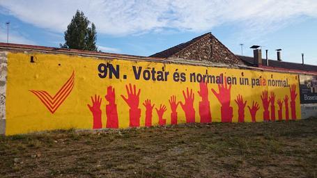 | Keywords: Mural Sant Celoni referèndum independència 9N.JPG Sant Celoni Vallès Oriental defending the right to vote in a referendum to decide whether the independence or not of Catalonia Sant Celoni Vallès Oriental defensant el dret a vot en referèndum per decidir sobre la independència o no de Catalunya own Jove September 1 2014 Catalan self-determination referendum 2014 Assemblea Nacional Catalana Photographs taken on 2014-09-01 | ||||