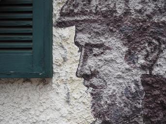 Keywords: mural windows man wall profile