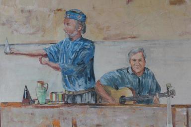 Keywords: murals guitar musician couple cheerfulness bar men guitarist song singer
