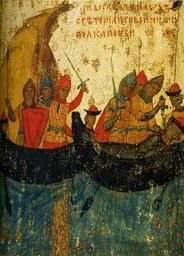 Keywords: Murder of saint Gleb.jpg ru Убийство Глеба в ладье Клеймо иконы Бо ис и Глеб с житием XIV век XIV c http //www icon-art info/masterpiece php lng ru mst_id 449 RusIcon other versions PD-Art Icons of Boris and Gleb