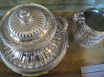 | Keywords: Musée Nissim de Camondo - silver 2.JPG Musée Nissim de Camondo Paris France - Silver from the Orloff silver dinner service commissioned by Catherine II of Russia from silversmith Jacques-Nicolas Roettiers 1770 Jacques-Nicolas Roettiers Pot à oille 1770/71 argent faisant partie du service commandé en 1770 par Catherine II de Russie pour Gregory Orloff Musée Nissim de Camondo Paris France Musée Nissim de Camondo Paris France I took this photographs There were no restrictions on photography other than prohibiting flash in writing and when I asked explicitly Thus the museum did not impose restrictions on the use of this image 2008-02-07 Daderot Own work all rights released Public domain Silverware in France Soup tureens Grigoriy Orlov Service Orlov 18th-century decorative arts Jacques-Nicolas Roettiers Collections of Musée Nissim de Camondo Salle a manger Silver serving dishes |