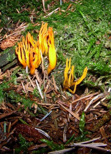 Keywords: mushroom forest forest floor mixed forest wood yellow europe fall softwood calocera viscosa