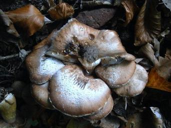 Keywords: mushroom mushrooms group many forest forest mushroom forest mushrooms brown brownish white forest floor leaves autumn forest autumn ground october