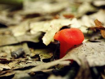 Keywords: mushroom orange little tiny growth fungus woods forest brown earthy natural macro closeup toadstool