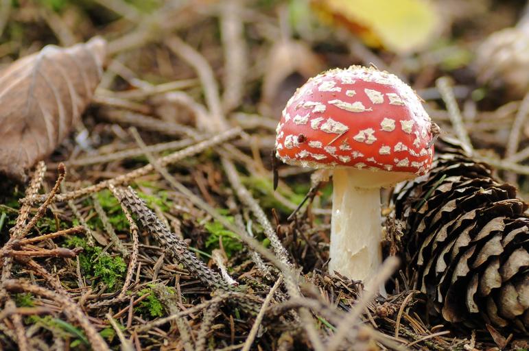 Keywords: mushrooms forest forest floor autumn fly agaric golden autumn forest mushrooms mushroom toxic red signal red white nature colors of autumn pine cones