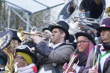 Keywords: music instruments carnival costume panel customs trumpet glarus
