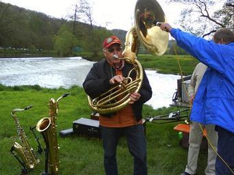 | Keywords: music jazz musician instruments saxophone horn microphone according to jagst river nature moses mill baechlingen langenburg hohenlohe garden party landscape green meadow island water hohenloher land may father's day ascension frisch fromm cheerful free airy sunny spring cap sunglasses anorack |