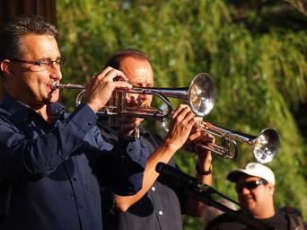 Keywords: music musicians band sound trumpets music band