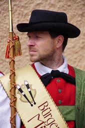 Keywords: musician mayor altoadige südtirol costume man person band portrait look people head male hat ladinia italy profile uomoduro director beard
