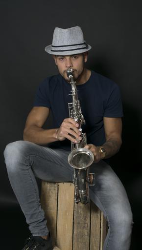 Keywords: musician saxophone model studio male adult young