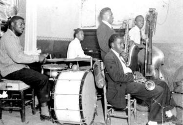 | Keywords: musicians florida musical instruments musicalinstruments tom's tavern tomstavern state library and archives of florida statelibraryandarchivesofflorida music musician drum brass piano bass saxophone band 1956 blackandwhite monochrome black and white Local call number: FP83200c Title: [Musicians performing in Tom's Tavern club at Gonzalez and Railroad streets: Pensacola, Florida] Date: 1956. Physical descrip: 1 photonegative : b&w ; 35 mm. Series Title: (Florida Folklife Collection.) Accompanying note: "L - Roosevelt Roland, drums; L rear - Henry 'Chick' Minor, piano; Center rear - George Hawkins, tenor sax; R - Corrie Davis, trumpet; R rear - Harold Andrews, bass." Repository: State Library and Archives of Florida, 500 S. Bronough St., Tallahassee, FL 32399-0250 USA. Contact: 850-245-6700. Archives@dos.state.fl.us Persistent URL: www.floridamemory.com/items/show/115855 Local call number: FP83200c Title: [Musicians performing in Tom's Tavern club at Gonzalez and Railroad streets: Pensacola, Florida] Date: 1956. Physical descrip: 1 photonegative : b&w ; 35 mm. Series Title: (Florida Folklife Collection.) Accompanying note: "L - Roosevelt Roland, drums; L rear - Henry 'Chick' Minor, piano; Center rear - George Hawkins, tenor sax; R - Corrie Davis, trumpet; R rear - Harold Andrews, bass." Repository: State Library and Archives of Florida, 500 S. Bronough St., Tallahassee, FL 32399-0250 USA. Contact: 850-245-6700. Archives@dos.state.fl.us Persistent URL: www.floridamemory.com/items/show/115855 |