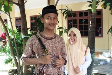 Keywords: muslims couple man woman happy love young romantic happiness girl two smile portrait together summer relationship girlfriend boyfriend indonesian traditional