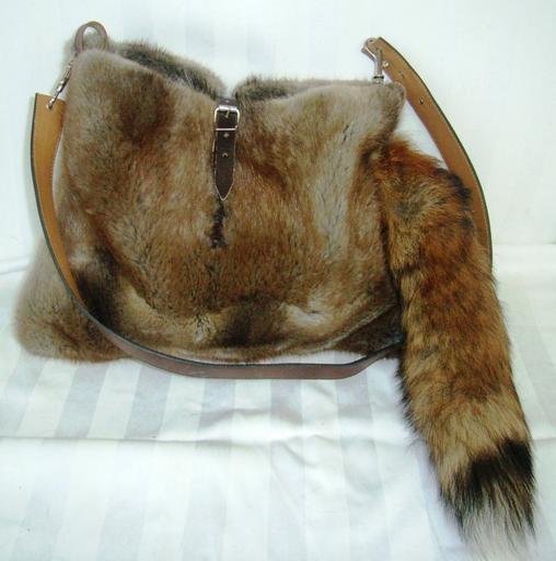 MAKE A MEME View Large Image Musquash fur bag with gray fox tail.jpg Bisamwammen-Tasche mit Graufuchsschweif des Ebay-Anbieters p gynt Musquash bellies fur bag with North-American grey fox tail p gynt 2011-06-11 p gynt Kürschner Fur bags Musquash clothing Gray fox ...