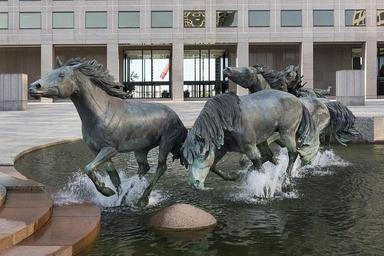 Keywords: mustangs sculpture fountain bronze art artwork architecture texas symbol statue square culture urban tourist outdoor center irving usa
