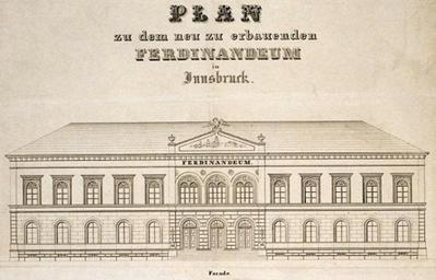 | Keywords: Mutschlechner Ferdinandeum 1.jpg Anton Mutschlechner Entwurf zum ersten Gebäude des Tiroler Landesmuseums Ferdinandeum Innsbruck 1842 umgebaut 1884 “1886 Webseite Ferdinandeum Insbruck http //sammellust tiroler-landesmuseum at/page/objekte/1843b 1842 Anton Mutschlechner 1785-1846 Main building of Tiroler Landesmuseum PD-old-100 |
