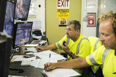 | Keywords: MV Cape Ray 140616-N-XB010-008.jpg en Ray Diberado control room operator for Edgewood Chemical Biological Center communicates with chemical engineering technicians operating the Field Deployable Hydrolysis System aboard MV Cape Ray during practice operations of the FDHS while Rob Malone assigned to the Joint Project Manager for Elimination records data on the current operation Cape Ray is tasked with the neutralization of specific chemical materials from Syria in accordance with the Organization for the Prohibition of Chemical Weapons guidelines while operating in international waters <br>Unit Defense Media Activity 2014-06-16 left https //www dvidshub net/image/1433585/mv-cape-ray 140616-N-XB010-008 2014-07-03 10 59 NAVAL STATION ROTA ES PD-USGov-Military-Navy Naval Station Rota Images from DoD uploaded by Fæ |