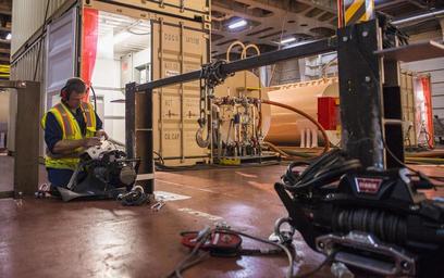 | Keywords: MV Cape Ray 140617-N-XB010-002.jpg en Eric Copeland a chemical operator for Edgewood Chemical Biological Center aboard MV Cape Ray repairs a crank that will help move drums containing chemical agent to feed into the Field Deployable Hydrolysis System for neutralization on the ship during an exercise in operating the FDHS Cape Ray is tasked with the neutralization of specific chemical materials from Syria in accordance with the Organization for the Prohibition of Chemical Weapons guidelines while operating in international waters <br>Unit Defense Media Activity 2014-06-17 ECBC https //www dvidshub net/image/1433587/mv-cape-ray 140617-N-XB010-002 2014-07-03 10 56 NAVAL STATION ROTA ES PD-USGov-Military-Navy Naval Station Rota Images from DoD uploaded by Fæ |